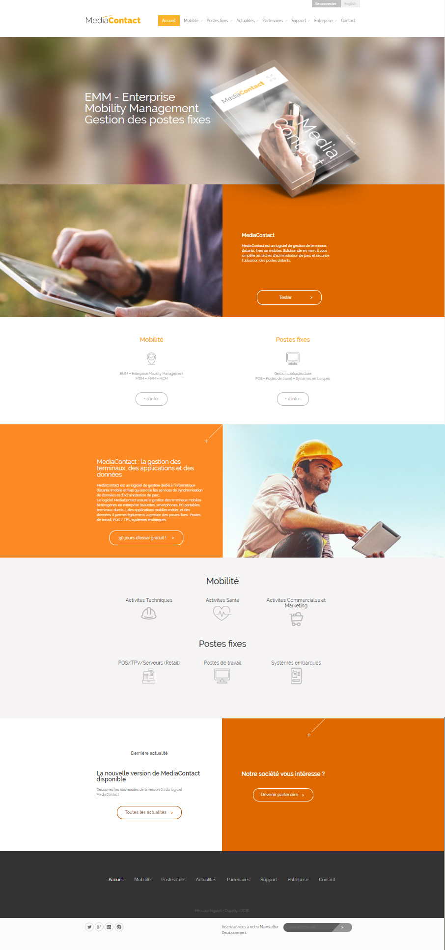 Télélogos Avec plus de 30 ans d’expérience, Telelogos s’inscrit comme un leader des logiciels d’administration et de synchronisation pour les flottes de terminaux mobiles, fixes et pour les automates. 01. Le client Avec plus de 30 ans d’expérience, Telelogos s’inscrit comme un leader des logiciels d’administration et de synchronisation pour les flottes de terminaux mobiles, fixes et pour les automates. Telelogos édite des logiciels performants, fiables et sécurisés qui s’adressent aux entreprises et aux établissements publics, de toutes tailles, en France et à l’international. Client: Telelogos Website: telelogos-mediacontact.com Date: 22 February 2017 Services: Developpement Front 02. La mission Il s’agit de refondre l’ensemble des sites de telelogos avec une cohérence graphique : www.telelogos.com, www.telelogos-mediacontact.com, www.telelogos-mediatransfer.com, www.telelogos-media4display.com. Les 4 sites sont gérés à partir d’une seule interface administrative. J’interviens au niveau du développement Front-End et je réalise la configuration CMS. Voir le site